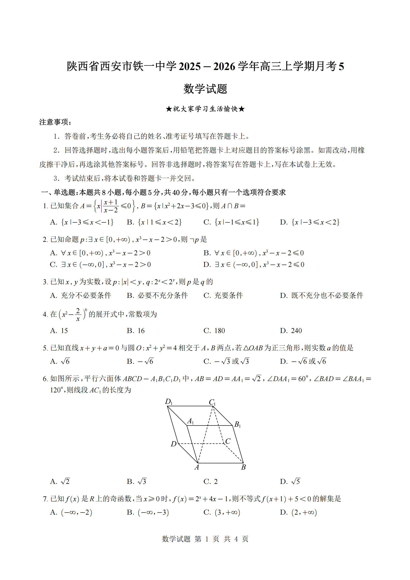 14 Jan 2026 1 min read 陕西省西安市铁一中学2025-2026学年高三上学期月考5数学试题与解析 (学生版)陕西省西安市铁一中学2025-2026学年高三上学期月考5数学试题与解析(学生版)陕西省西安市铁一中学2025-2026学年高三上学期月考5数学试题与解析.pdf3 MBdownload-circle